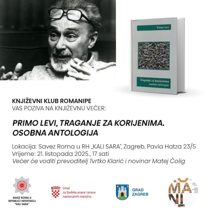 Književni klub Romanipe poziva na književnu večer 21. listopada 2025. godine posvećenu talijansko-židovskom kemičaru i književniku Primu Leviju (1919.-1987.), možda najpoznatijem po autobiografskom romanu “Zar je to čovjek” (1947.) u kojem govori o svom logoraškom iskustvu u Auschwitzu. Iako žanrovski i tematski raznovrstan, temeljna nit koja se provlači kroz njegov opus upravo su autobiografske refleksije o preživljavanju u nacističkim koncentracijskim logorima.